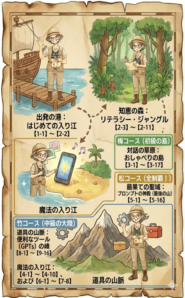 さらに、冒険気分で学習を進められる「宝探しの地図(ロードマップ)」も手作りしました。